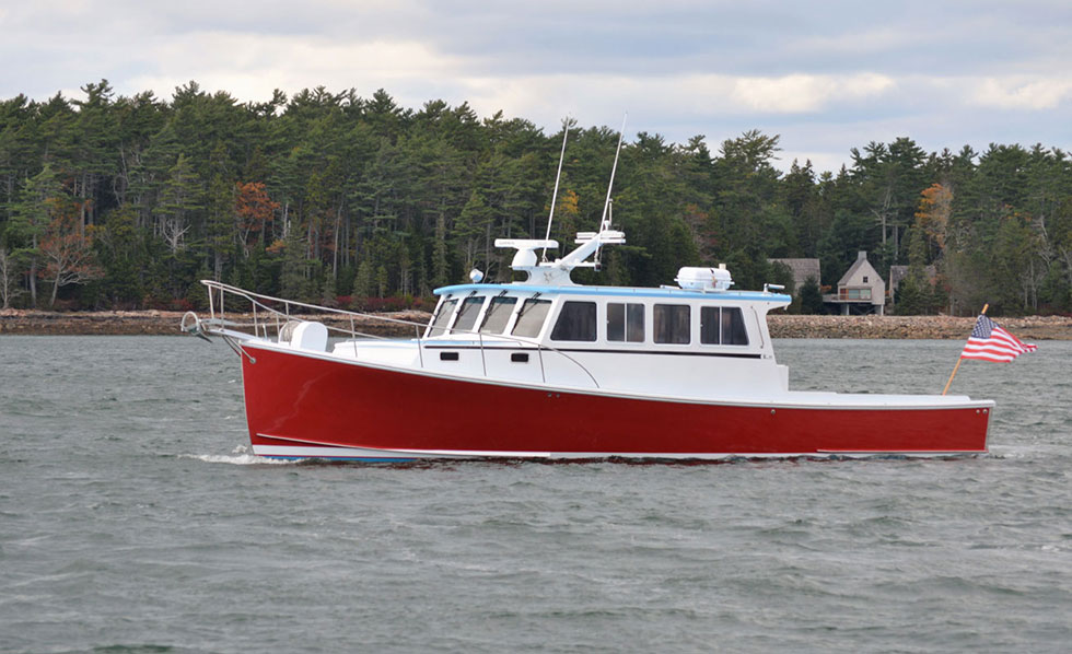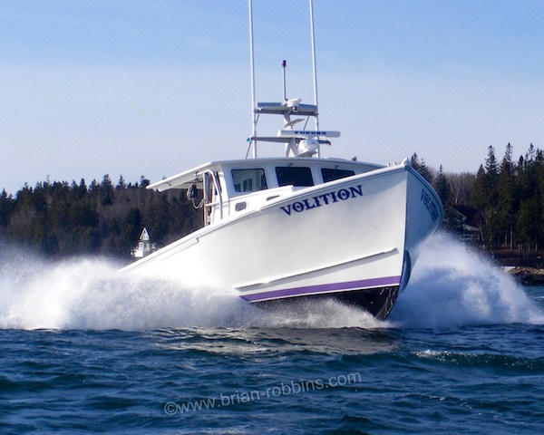 Owner's Comments: That 20-knot speed figure represents both Volition's top speed and her cruise. Owner Jarod Bray opted to go with the continuous duty rating for his D16 Volvo: "650 horses@l800rpm . . . And that's where I run her." Mainely Boats' custom wheelhouse complements the high sides and sheer line of the Young Brothers 42 hull well, says Bray.